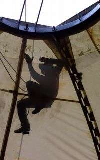 Un trabajador realiza labores de mantenimiento en el domo de la Feria Internacional del Libro del Palacio de Minería