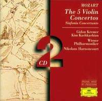 Por falta de espacio no cupo un dato coyuntural: la Sinfonía Concertante de Mozart que está en el álbum central de este Disquero es la obra que interpretará en su único concierto en México la Filarmónica de Viena en el Auditorio Nacional, aunque el escucha no podrá disfrutar la belleza de esta música como es menester, porque pondrán micrófonos debido al tamaño de la sala elegida en aras de la rentabilidad (económica, pero sobre todo política) del asunto. Pero bueno, si de escuchar con amplificación se trata, he aquí otra versión suprema de esta obra, en otro álbum doble Deustche Gramophon con quien comparte con Ana Sofía Mutter la categoría de mejor violinista en el mundo: el maestro ruso Gidon Kremer, quien aquí hace equipo con la violista Kim Kashkashian. El título del álbum habla por sí solo: The 5 Violin Concertos y como no existen las casualidades, la orquesta es la Filarmónica de Viena y el director Nikolaus Harnoncourt. De puro lujo.