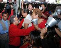 A dos semanas de las elecciones locales, el priísmo mexiquense no se mostró tan unido como presumió Madrazo. A gritos y empellones, militantes del Consucc expresaron su inconformidad con el dirigente priísta estatal. Rompieron un cerco y le pidieron su intervención al candidato, quien prometió atender el asunto.