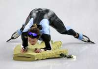 Claudia Pechstein realizó un estrambótico festejo de su presea de plata