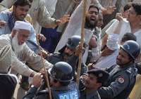 El sábado, la policía impidió a Fazal-ur-Rehman, uno de los líderes del partido Foro de Acción Unida (Muttahida Majlis-e-Amal), viajar de Islamabad a Karachi para sumarse a las actividades antieuropeas.