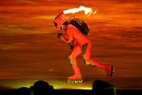 Acróbatas voladores, fuego, música y velocidad sobre ruedas, elementos que animaron la ceremonia de cierre del certamen invernal, en Turín