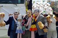 Veracruz, Ver., a 27 de febrero. Los tres alegres compadres desfilaron en el Carnaval de Veracruz, acaparando tanto aplausos como rechiflas de jarochos y visitantes. Ellos aspiran a gobernar a México y por ello, abrazados a quien será su pareja presidencial, se sumaron a las comparsas que recorrieron el bulevar costero Manuel Avila Camacho.