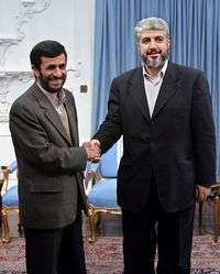 Imagen de archivo del presidente iraní Mahmud Ahmadinejad (izquierda) junto con Khaled Mashall, dirigente de Hamas