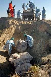 Entierro de restos de pollos, ayer, en el extremo norte de Pakistán
