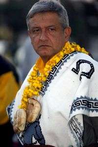 "Andan muy desesperados dos candidatos (Calderón y Madrazo) a la Presidencial, de dos partidos, apoyados por la mafia de cuello blanco que opera en el país; ahí andan gritando como chachalacas, que quieren debates; ya van a tener su debate, les vamos a dar su debate, nada más que primero deben apurarse a hacer campaña porque ahora ni se despeinan, todo lo hacen en ruedas de prensa, con publicidad y con dinero; todo lo que hacen se llama mercadotecnia."
