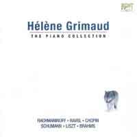 En una cajita con cinco discos cinco encontramos los amores de Elena: Rachmaninoff , Ravel, Chopin, Schumann, Liszt y Brahms. Impresionante en el Segundo de Raj (apócope de Rachmaninoff), amorosísima en Ravel, poeta elevada en Chopin y en Schumann, sensualérrima en Brahms, sencillamente genial en Liszt Hélène Grimaud, The Piano Collection (discos Brilliant), se titula este tesoro.
