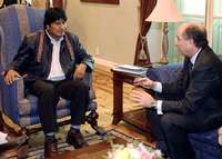 La Paz, 3 de marzo. La petrolera española Repsol-YPF dijo estar dispuesta a mantener sus inversiones en Bolivia, renegociar sus concesiones petroleras en sujeción a la ley estatista vigente, que obliga a compartir ganancias en equidad con el Estado, y acatar el fallo de la autoridad que investiga una acusación de contrabando en su contra. El presidente de Bolivia, Evo Morales, otorgó plenas garantías a la inversión extranjera durante una entrevista con el titular de la petrolera, Antonio Brufau, confirmó el empresario español .
