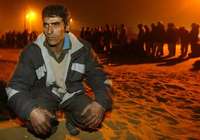 El palestino Hassan Dada espera junto a cientos de compatriotas fuera del punto de cruce de Erez, en la franja de Gaza, para controles de seguridad antes de poder ingresar a Israel