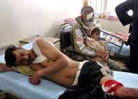 Un anciano iraquí herido en un atentado, que tiene a su nieto en brazos, espera ser atendido en un hospital de Bagdad