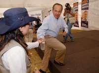 Metepec, Edomex, 4 de marzo. Antes de despedirse de cientos de candidatos locales e integrantes de la estructura mexiquense del PAN, el abanderado presidencial Felipe Calderón les pidió: "Oigan, nada de teles que se rifen ni nada de trucos. Que haya gente limpia y que vaya por convicción" a los mítines.