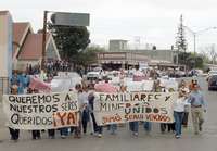 Ampliar la imagen Familiares de los mineros que quedaron atrapados en la mina Pasta de Conchos marcharon ayer por Nueva Rosita, Coahuila FOTOLeopoldoRamos