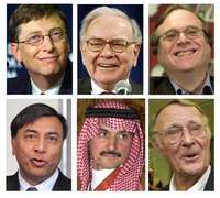 ** HOLD FOR RELEASE AT 6:30 P.M. EDT -- FILE ** Topping the Forbes list of 400 Richest Americans are Bill Gates, top left, in the first position; Warren Buffett, top center, in the second spot, Paul Allen, top right, in sixth position, Lakshmi Mittal, bottom left, in the fifth position; Prince Alwaleed, bottom center, in the eighth position, and Ingvar Kamprad in the fourth spot. (AP Photo/ PHOTO OF KAMPRAD BY PRESSENS BILD, FILES)