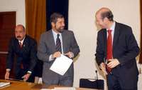 Rafael López Castañares, Juan Ramón de la Fuente y Félix García Lausín, durante la reunión del Consejo Universitario Iberoamericano