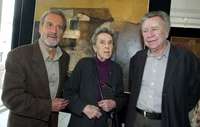 Vicente Rojo, Leonora Carrington y Manuel Felguérez, durante la exposición