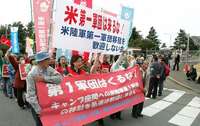 De manera paralela a la consulta, miles de personas llevaron a cabo una manifestación por segundo día consecutivo en la ciudad Zama, en rechazo al plan de reorganización de las tropas estadunidenses en Japón.
