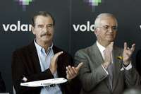 El presidente Vicente Fox y Pedro Aspe, durante la inauguración de operaciones de la línea de bajo costo Volaris