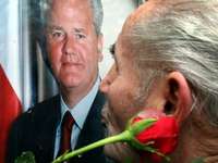 Ampliar la imagen Un serbio besa una foto de Slobodan Milosevic, ex presidente yugoslavo encontrado muerto en su celda del TPI, donde era juzgado por delitos de lesa humanidad, en La Haya, el pasado fin de semana FOTOReuters