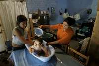 Tras esperar en fila durante más de cinco horas su dotación semanal de agua, habitantes de la ciudad de México por fin pueden hacer uso del líquido. La imagen fue captada el jueves pasado