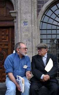 David Velasco, director del Centro Pro, y el obispo Samuel Ruiz, durante los trabajos del tribunal