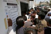 Protesta frente a la junta municipal del Instituto Electoral del Estado de Mexico, por la supuesta violación a los paquetes electorales que habría quitado el triunfo por mínima diferencia al candidato del PAN en el municipio de Zinacantepec