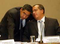 El consejero presidente del IFE, Luis Carlos Ugalde (derecha), y un asesor