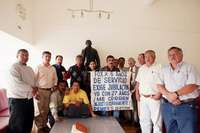 Integrantes de la Unión Nacional de Trabajadores de Confianza de la Industria Petrolera ayer en las oficinas de La Jornada