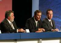 Alejandro Encinas Rodríguez, jefe de Gobierno del Distrito Federal; el presidente Vicente Fox Quesada, y José Luis Luege Tamargo, titular de la Secretaría de Medio Ambiente y Recursos Naturales, durante la inauguración del cuarto Foro Mundial del Agua