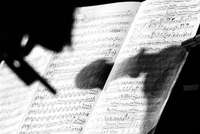 Reflejo en una de las particellas de la Orquesta Filarmónica de Viena, en México