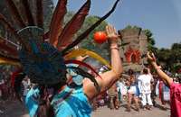 Frente al monolito de Tláloc, dios de la lluvia y la fertilidad en la mitología mexica, ubicado afuera del Museo Nacional de Antropología, en Chapultepec, decenas de indígenas nahuas, otomíes y huicholes recibieron ayer por la mañana a corredores del pueblo hopi, originario de Arizona, Estados Unidos.