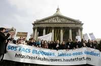 Estudiantes franceses protestan contra el gobierno frente al Panteón, ayer en París