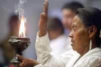 Ceremonia mazahua realizada en el Encuentro de Pueblos y Organizaciones Indígenas en Defensa del Agua. El ritual se realizó para pedir que se protejan los recursos hidráulicos