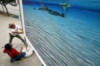 Trabajadores colocan una exposición fotográfica sobre el agua en la Alameda Central, en el contexto del Foro Mundial del Agua que se realiza en la ciudad de México FOTOJoséCarloGonzález