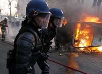 Un veh�culo arde durante un enfrentamiento entre polic�as antidisturbios e inconformes, ocurrido despu�s de la manifestaci�n en Par�s. A la derecha, j�venes en Marsella exigen �uerte al Contrato Primer Empleo�FOTOS Ap