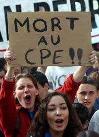 Entre las cuatro y las 7:30 de la tarde, 350 mil personas pasaron por el puente de Austerlitz sobre el Sena, situado a la mitad del itinerario de la manifestación para expresar su repudio al CPE, aprobado por el Parlamento el 9 de marzo. Tal contrato alarga el periodo de prueba a dos años destinado a jóvenes de menos de 26 años, y en ese periodo el trabajador puede ser despedido sin ninguna explicación.