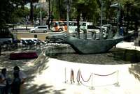 Este sábado al mediodía, iluminado como una deidad solar y luego de un paseo en un camión que lo llevó de Chapultepec al Zócalo, la escultura embarcación Cocodrilo, de Leonora Carrington, volvió a volar por los aires para posarse, ahora sí de manera definitiva, en su nuevo lecho de agua: una fuente colocada en el andador de Paseo de la Reforma, en la esquina con Havre, en la Zona Rosa, cerca de Insurgentes.