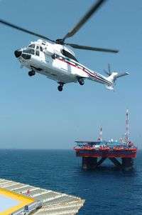 El presidente Vicente Fox llegó en helicóptero a visitar el pozo exploratorio en aguas profundas Noxal, en Cosoleacaque, Veracruz