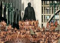 Organiza Tunick revolución nudista en torno a efigie de Simón Bolívar