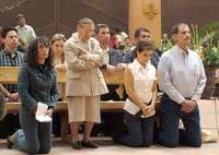 Valle de Chalco, Mex., 19 de marzo. El presidente Vicente Fox vino a Valle de Chalco a "acercarse" a la gente pobre de este municipio, que en su momento fue el modelo salinista de la solidaridad. Después de saludar, junto con su esposa, a los niños cantores del Valle de Chalco, quienes participaron en la misa dominical en la catedral de este municipio, Fox se comprometió a trabajar "duro" en lo que le resta de su mandato para combatir la pobreza y necesidades de agua potable, servicios, educación y salud de los habitantes de este lugar.
