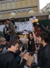 Bloqueo en la escuela Marie Curie, en Marsella, contra el contrato del primer empleo