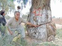 Un ecatepense señala los daños a pirules que tienen 90 años de antigüedad, 41 de los cuales ya fueron derribados la semana pasada por personal de la constructora ARA