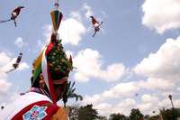 Cae volador de Papantla del palo ceremonial durante la Cumbre Tajín