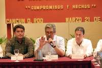 Reunión del gobernador de Quintana Roo, Félix González Canto; el secretario de Turismo, Rodolfo Elizondo, e integrantes del Comité de Recuperación de Playas