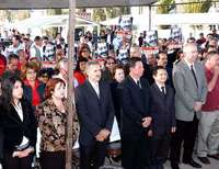 De Hermosillo se trasladó a Magdalena de Kino. Los habitantes del municipio recordaban cómo el año pasado fue notable la ausencia de los principales dirigentes nacionales, incluido Roberto Madrazo Pintado, entonces presidente nacional del tricolor. Esa vez, Beatriz Paredes Rangel justificó su ausencia diciendo que ''seguramente surgió una cuestión de último momento''.