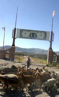 Cardonal, Hgo., 22 de marzo. El paisaje es triste: largos tramos de terracería donde sólo se levantan huizaches, biznagas y magueyes. Al final del camino, una placa de cuatro metros ostenta el dibujo de un billete con dos jinetes en el centro y la leyenda "one dollar"; en los extremos, dos astas ondean banderas: una mexicana y otra estadunidense.