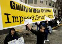 Protesta en Indianápolis, ayer durante la visita del presidente George W. Bush a la ciudad, a quien declararon "culpable de crímenes de guerra", por lo que exigen su destitución FOTOAp