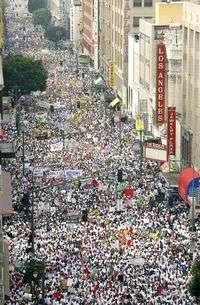 La policía de Los Angeles calculó la participación de más de medio millón de personas, en lo que muy bien podría ser la movilización de migrantes más grande en la historia estadunidense, y la mayor marcha de protesta en Los Angeles.