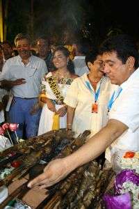 Ampliar la imagen Ayer, en la muestra gastronómica del Tianguis Turístico de Acapulco, el alcalde perredista Félix Salgado invitó a Rodolfo Elizondo a comer pejelagarto; el secretario de Turismo respondió: "¿Cómo crees?, éstos son momentos electorales" FOTOJavier Verdín
