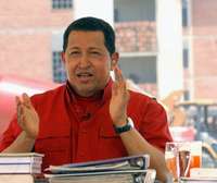El presidente de Venezuela, Hugo Chávez, habla durante su programa semanal Aló, presidente, en la ciudad de Miranda
