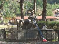 Una escultura en bronce del niño Benito, que evoca su época de pastor, se encuentra junto a la laguna encantada, en la que, cuenta la tradición popular, por las noches se escucha el sonido de un caracol, proveniente de una gran roca que nunca ha podido ser dinamitada y que es la entrada al lugar donde mora "el dueño" de ese estanque, "quizá un chaneque".